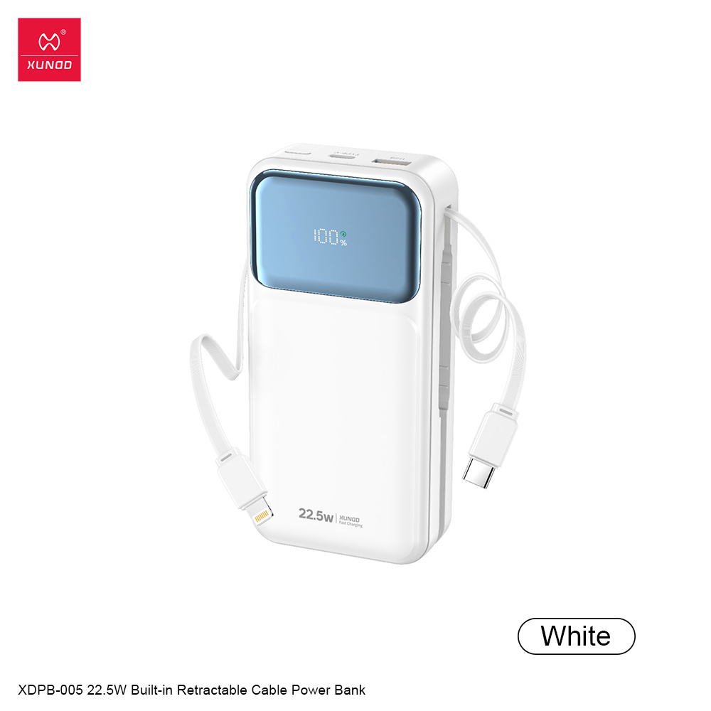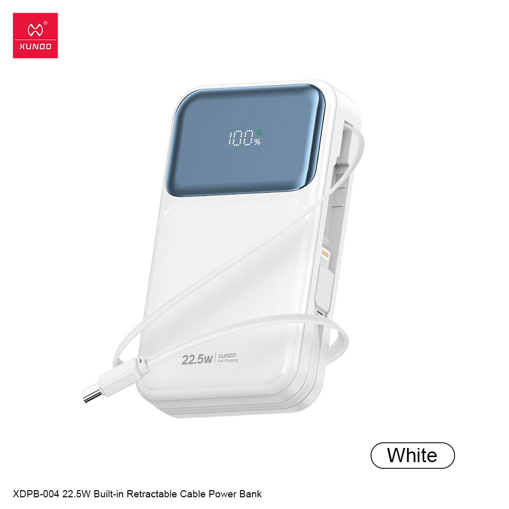 XDPB-004 伸缩线充电宝 - 60厘米可伸缩Type-C线 + Lightning线 , USB-A+Type-C 双输出接口